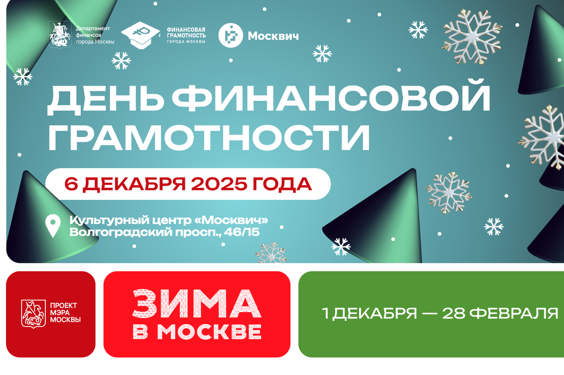 6 декабря 2025 года в культурном центре «Москвич» в рамках проекта «Зима в Москве» пройдет масштабное просветительское мероприятие для всей семьи – День финансовой грамотности.